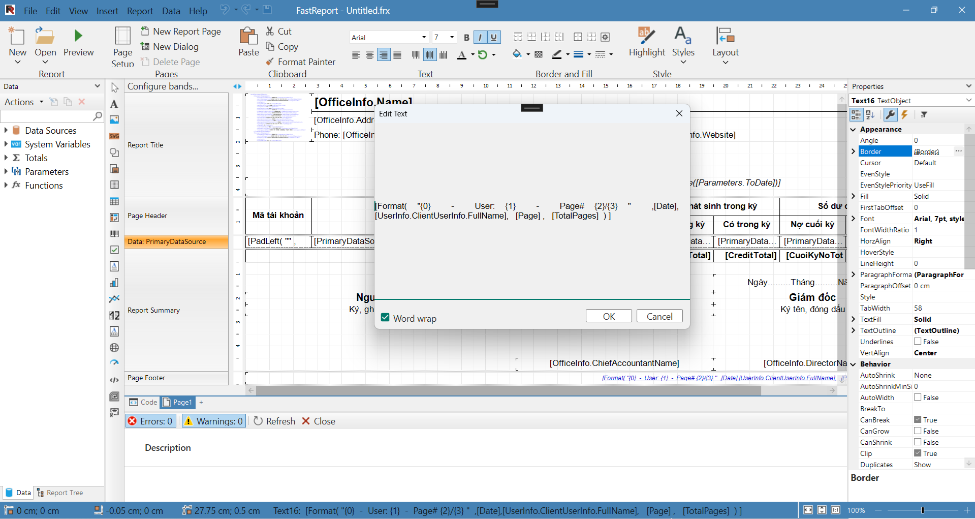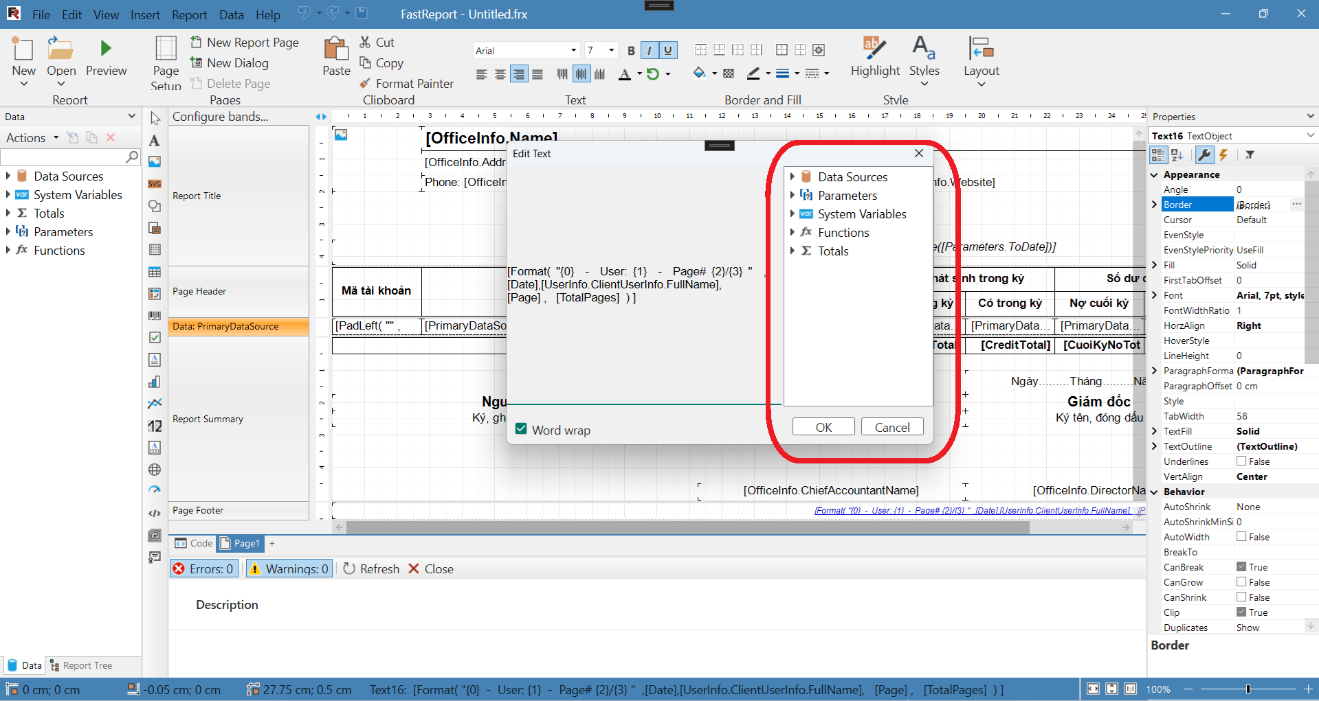 When i double click to edit text for a Text Object the Datasource not show at the right side of dialog screen, the datasource only display after i run Preview report, please see screens short below